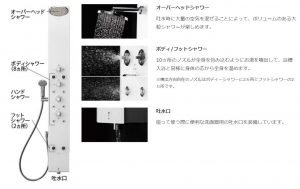 ただ、普通のシャワーでは温まらない・・・わけですがレインシャワー(オーバーヘッドシャワー)が付いているのです!!自宅マンションでもオプションで付けたのですがそれよりも勢いがあるのと、浴槽がないことで狭いですから自然と温まりやすくなるんですよね~。レインシャワーで全身を洗い終える頃には浴槽に長く浸かったゆでだこ状態に!(笑)