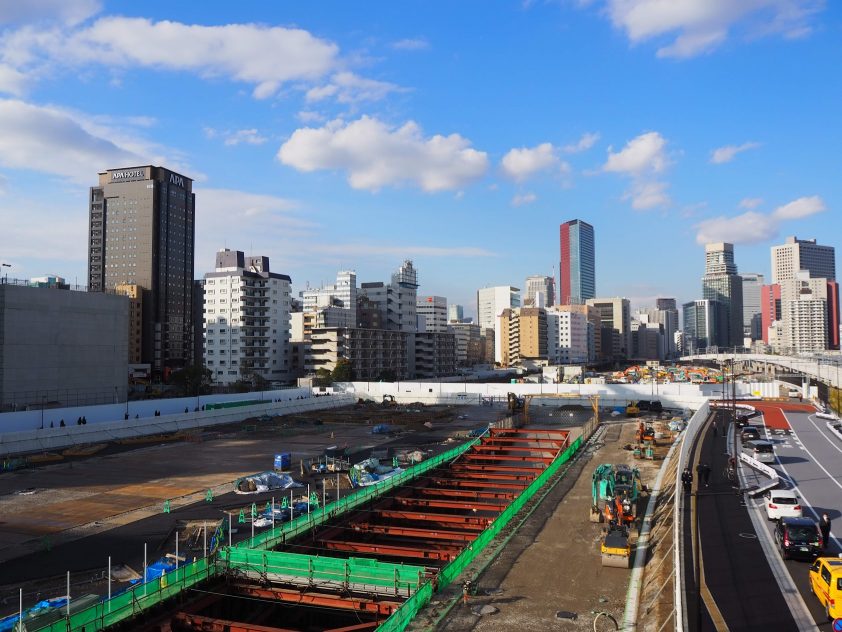 高輪ゲートウェイの駅前には現在、大きな白いテントが張ってます。駅員に聞いてみたところ、東京五輪の記念イベントをする予定だったそうなのですが、新型コロナの影響で中止しているそうです。期間限定なので残念ですね。というか、五輪やるんですかね。。(おまけ2)周辺工事状況