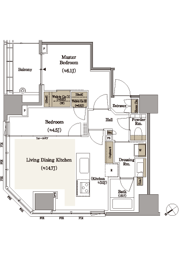 A Type 2LDK 57.95㎡ 管理費489円/㎡