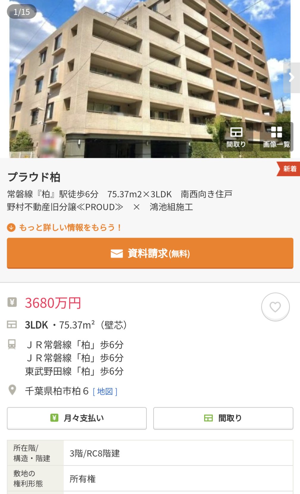 プラウド柏、この価格帯で購入できる出物比較としてはかなり良いと思います!