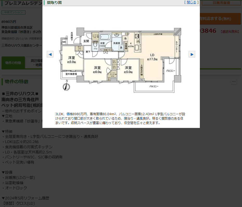 専有面積:80.04㎡