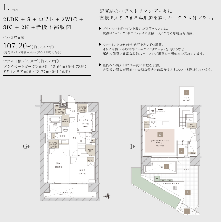 ・遊歩道直結のメゾネットは販売中