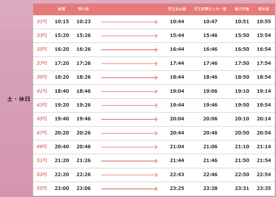 京王多摩センター 7:01発(始発)