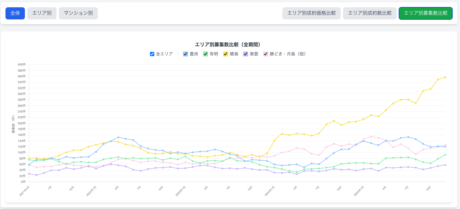「晴海エリアの在庫急上昇」