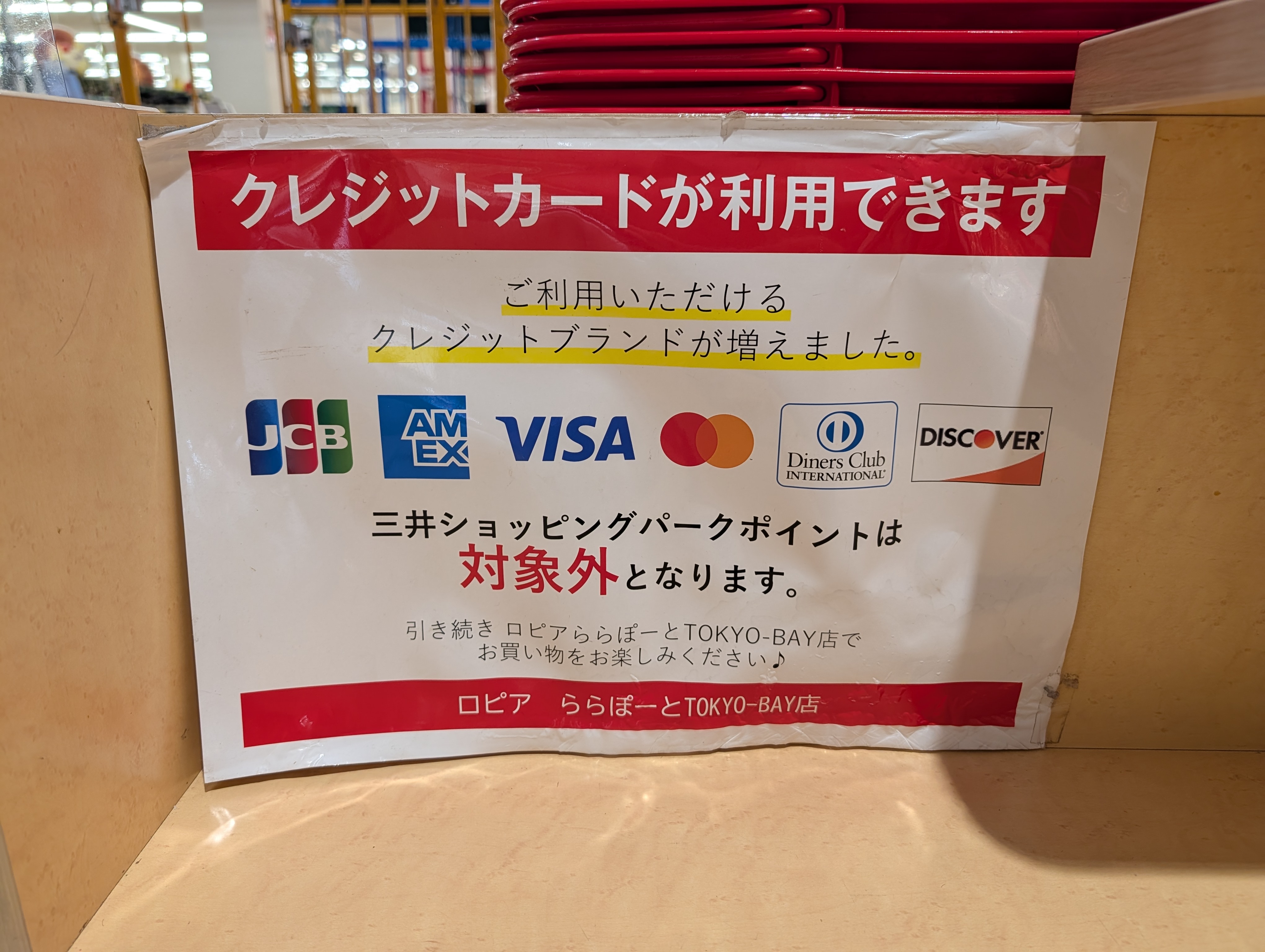 ららぽーとにはスーパーマーケットのロピアが入っているのですがららぽーとTOKYO-BAYルールでクレジットカードが利用できるのも嬉しいところです!