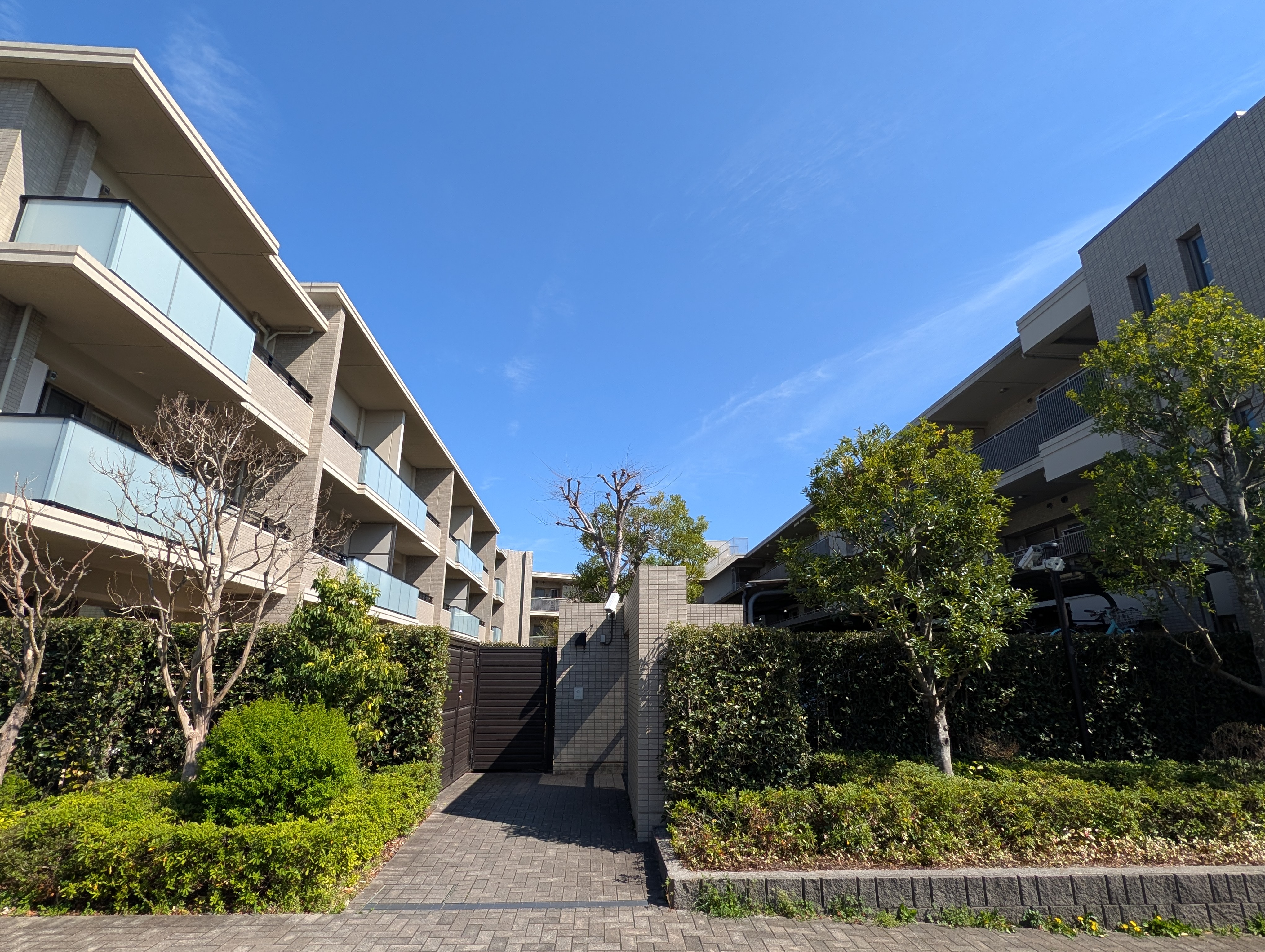 視界抜けしない部屋でも敷地内の緑を望めたり向かいの戸建としっかり離隔が取れたりと窮屈感はありません。